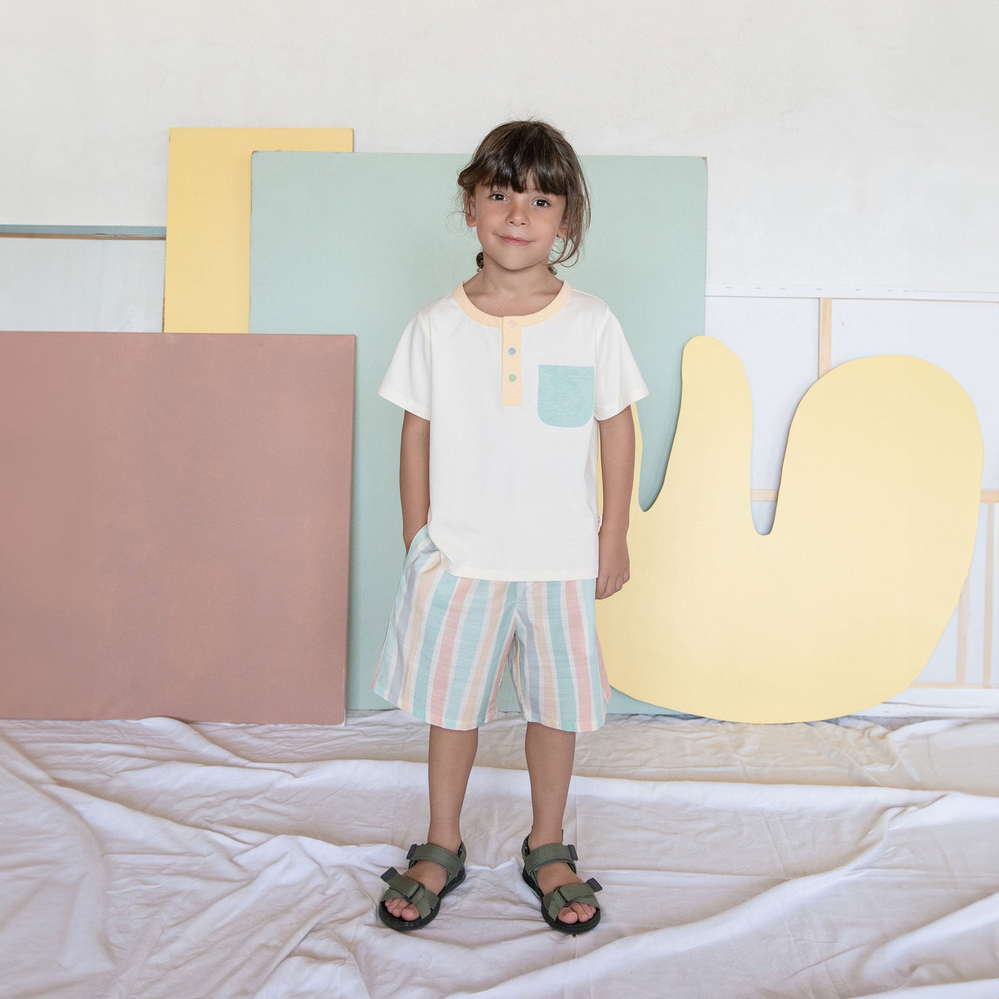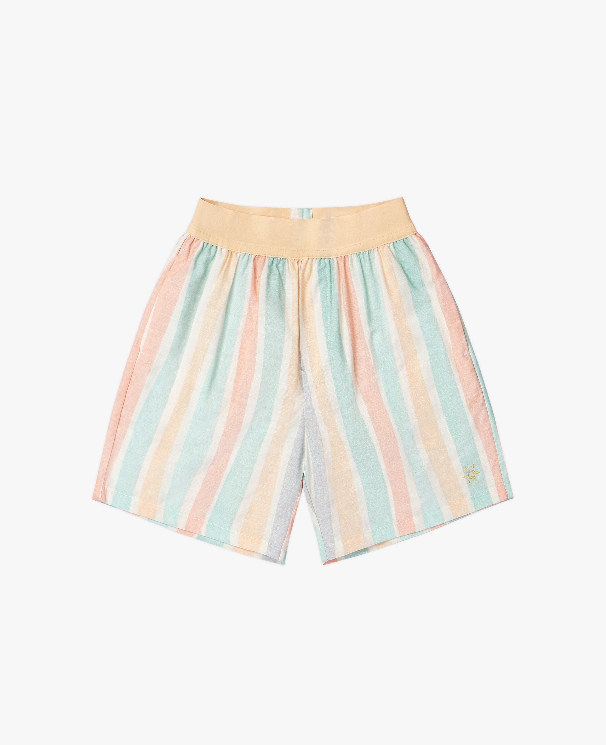 Our Bamboo Shorts are perfect for a sunny day on the playground, field, or beach. Made with bamboo, these shorts let your little adventurer run, climb, and explore in cool comfort. With bright, irregular stripes of colour and a stylish exposed elastic waistband, they'll feel and look great in these soon-to-be classic additions to their summer wardrobe.